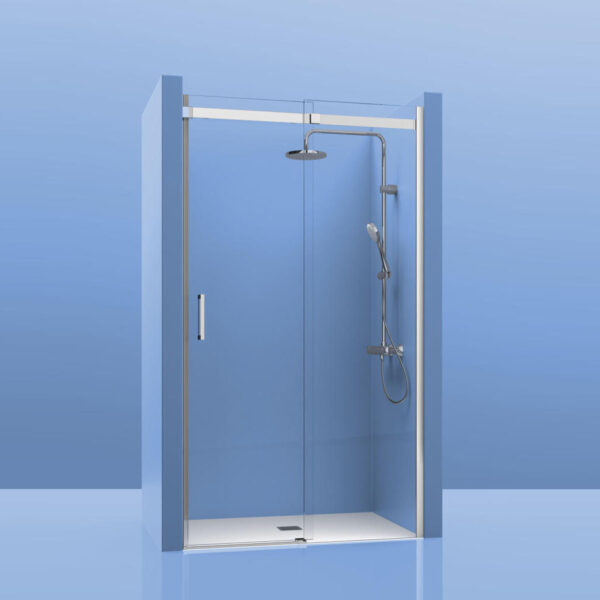 Mampara De Ducha frontal 1 Cristal Fijo + 1 Cristal Puerta. Elegant 100