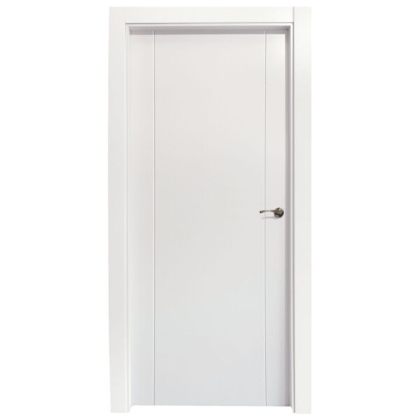 Nuestra puerta de interior fabricada en DM maciza aligerada de 35 mm de grosor mantendrá el ambiente de su habitación gracias a su aislamiento térmico y acústico de poliestireno expandido (EPS). Su cerco en DM 70 x 25 mm con 3 pernios y petaca.