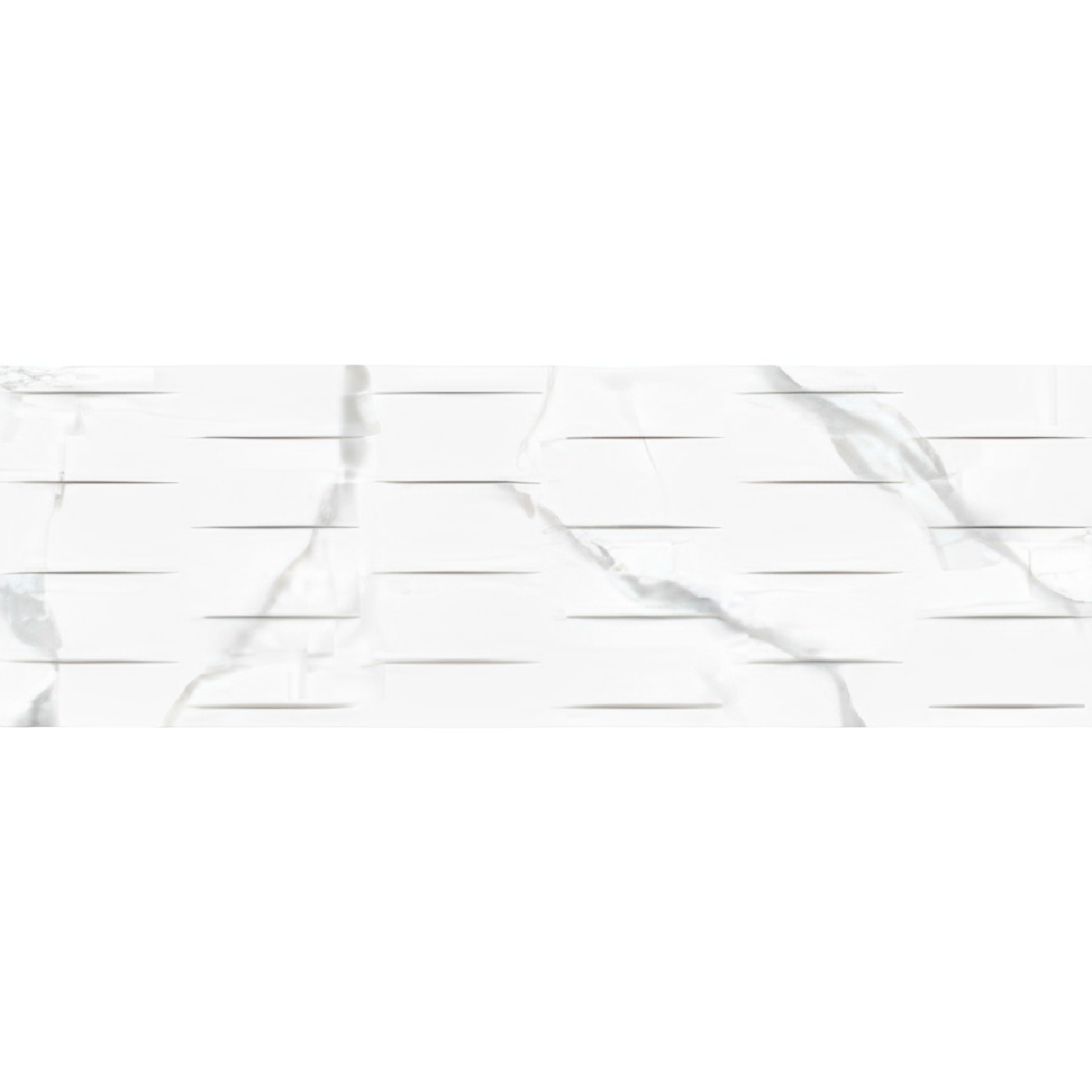 Pasta blanca rectificada mate de formato rectangular y 10mm de espesor. Revestimiento con relieve, útil para baño, cocina. De estilo clásico contemporáneo emulando al mármol.