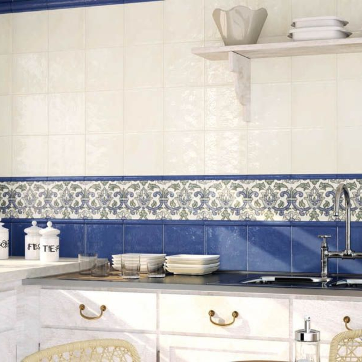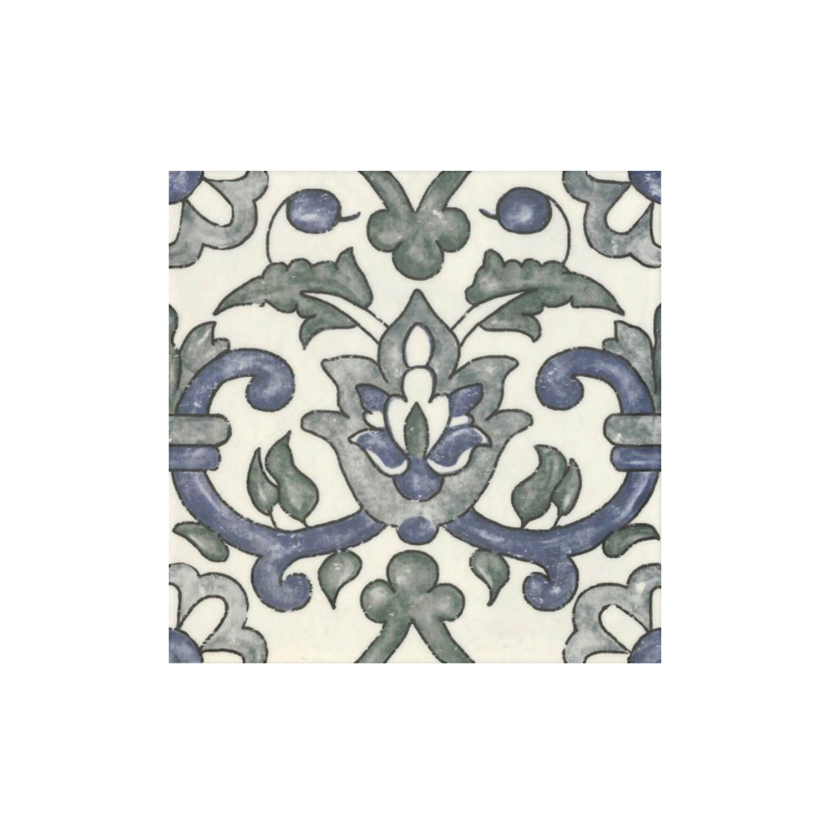 Azulejo pasta roja no rectificado con acabado brillo, de forma cuadrada y 9mm de grosor. Los sets decorativos que acompañan a la colección forman eclécticos dibujos al más puro estilo mediterráneo, todo ello compaginado con la serie cromática.