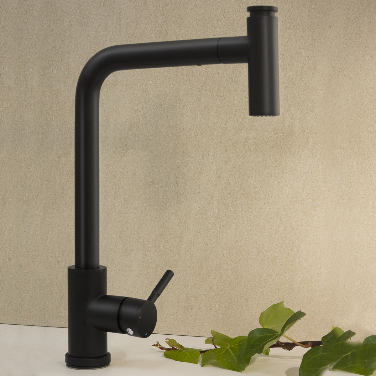 Grifo de cocina con monomando abatible de arco alto y forma angular. Tiene unas líneas sofisticadas y alargadas con lo que tendrás un diseño atrevido y elegante. Dispone de salida de agua multifuncional mediante el botón de selección de chorro a rociado. Ajusta fácilmente la temperatura y el flujo del agua gracias al mando flexible. De fácil montaje en superficie solo necesitaras de un orificio y lo puedes usar tanto con una como con dos pilas de fregar. De gran altura 34,5 cm y con giro de 360º es ideal para llenar tus ollas con la extensión del caño y para la limpieza de las pilas de fregar.