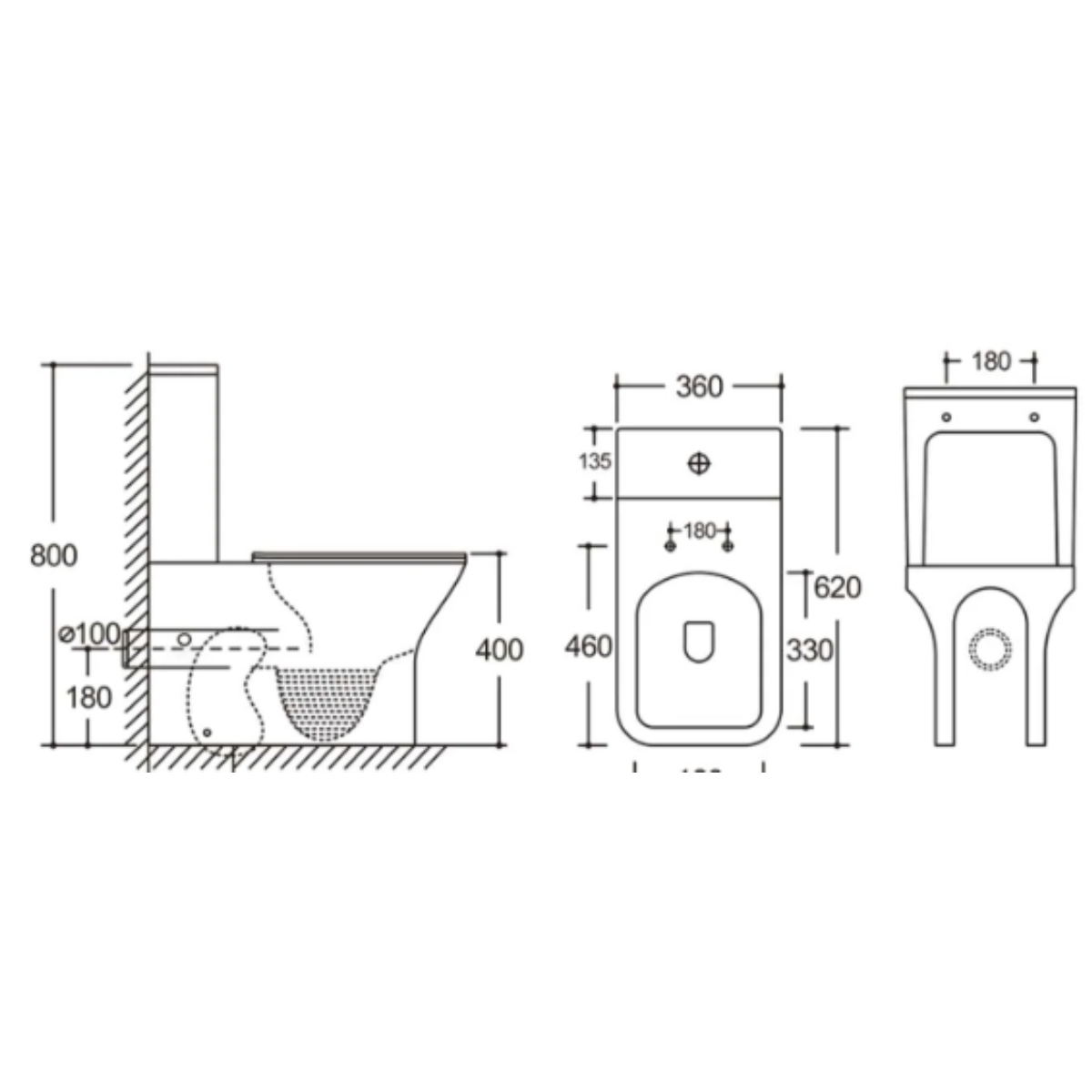 Inodoro con líneas redondas para un detalle moderno en el cuarto de baño. Tipo de salida Dual (Horizontal-Vertical), entrada de agua inferior izquierda o derecha, material asiento y tapa UF amortiguadas, con mecanismo economizador de 3/6 Litros y sistema Rimless. Fabricado con material de cerámica de alta calidad, compacto a pared de 2 piezas e incluye manguetón flexible. Las medidas del inodoro de dos piezas son 36 cm de ancho, 62 cm de largo y 80 cm de alto.