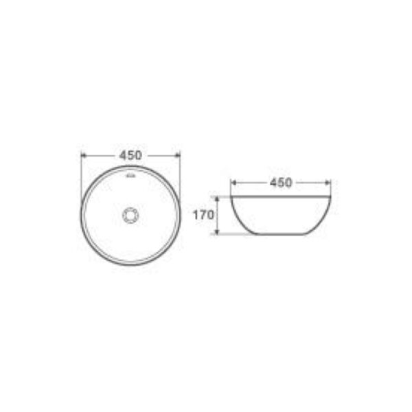 Lavabo de cerámica sanitaria mate de sobre encimera sin rebosadero. Fácil de instalar y de limpiar.