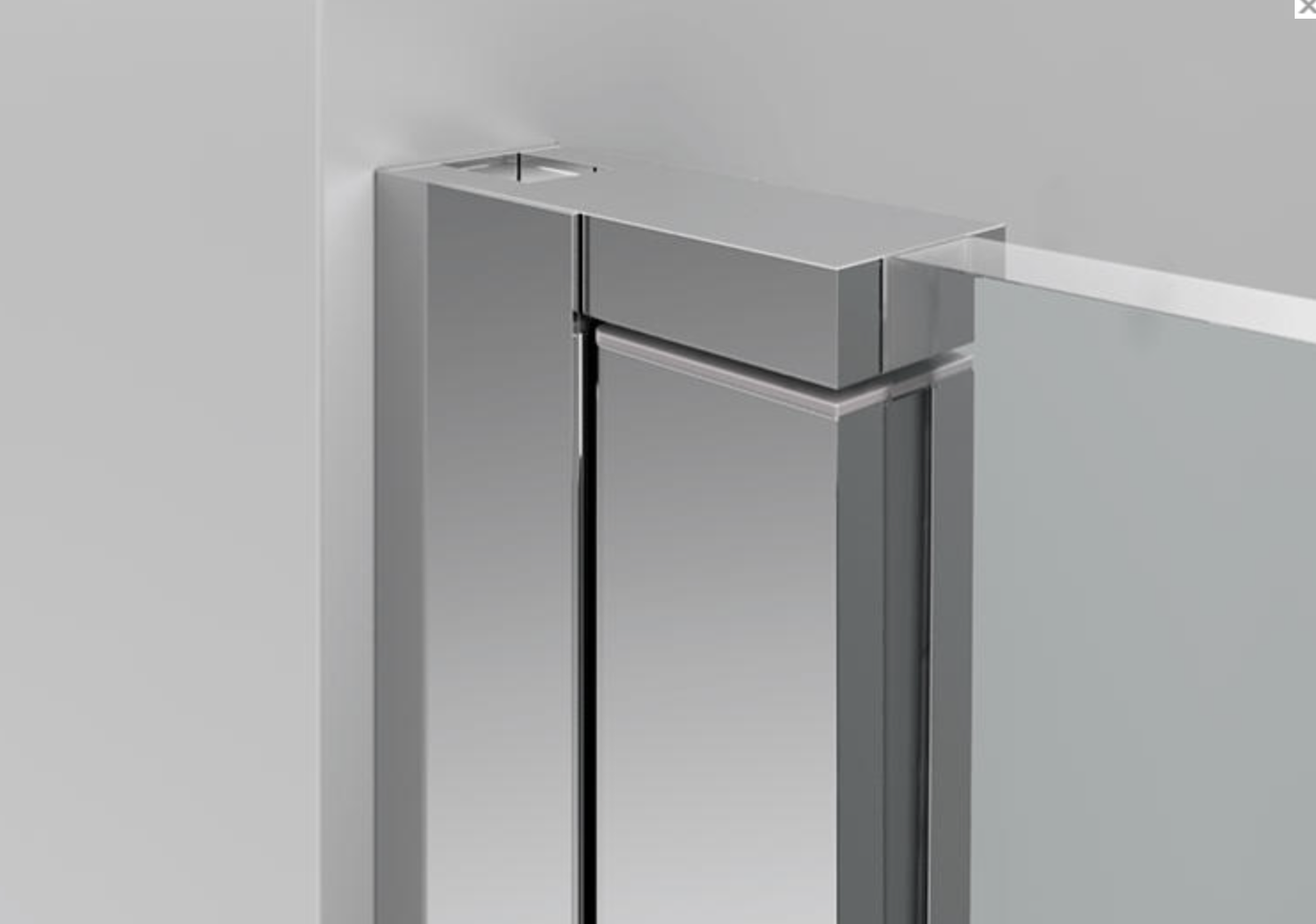 Mampara Angular: 1 cristal puerta + 1 cristal fijo. Sistema de apertura de puerta abatible.