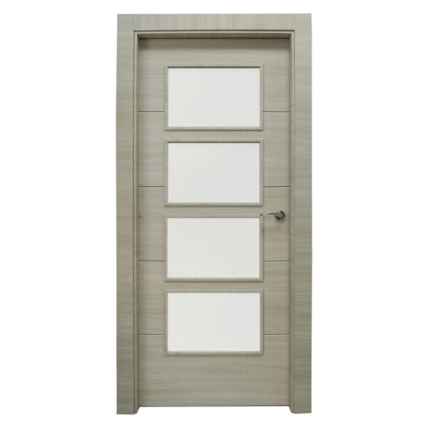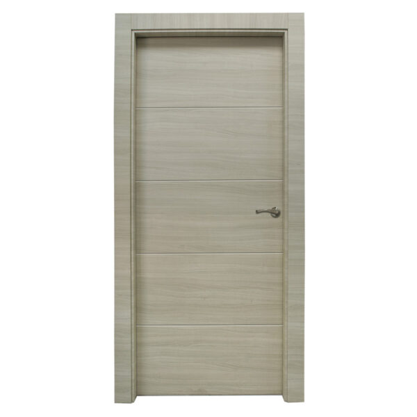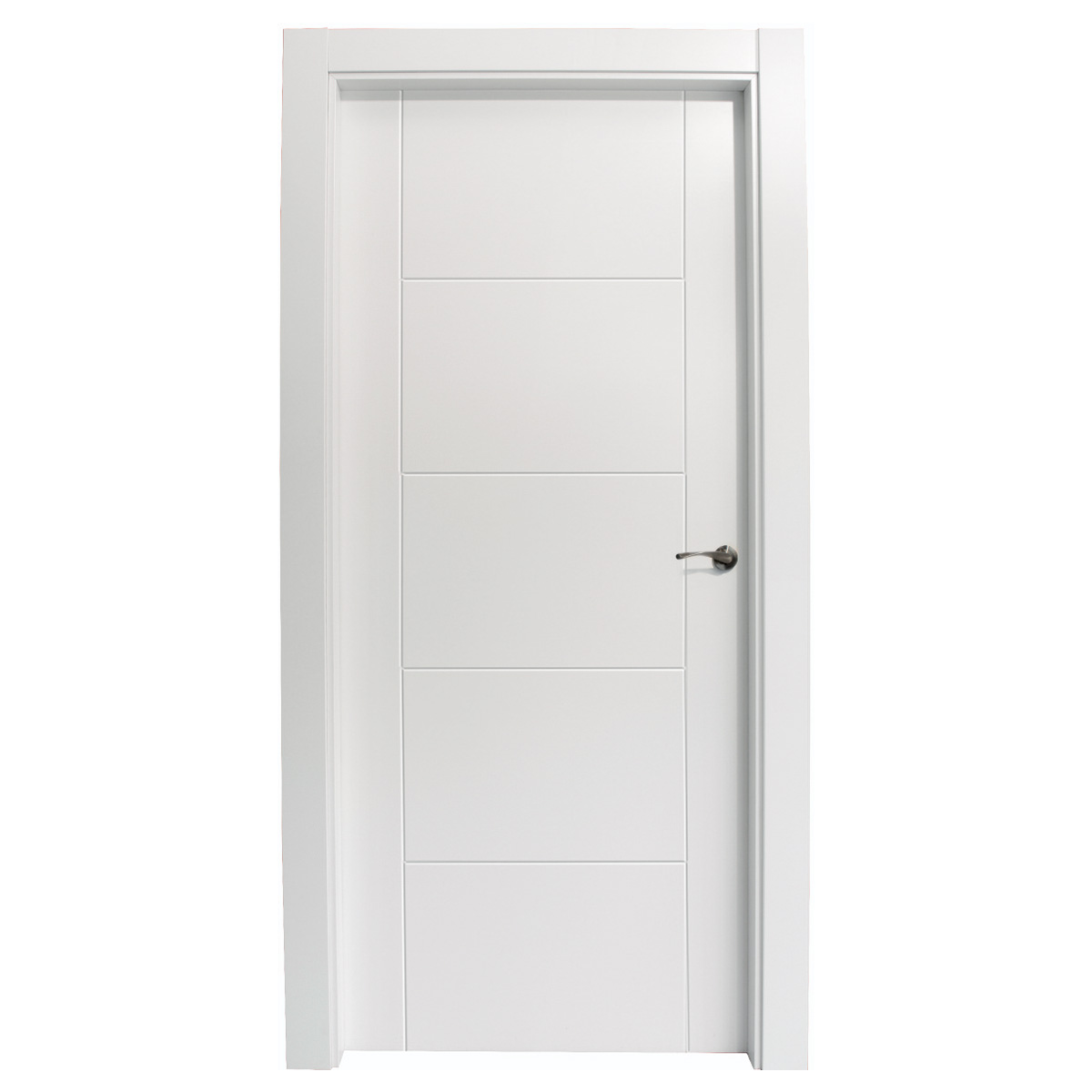 Nuestra puerta de interior fabricada en DM, maciza aligerada de 35 mm de grosor mantendrá el ambiente de su habitación gracias a su aislamiento térmico y acústico de poliestireno expandido (EPS). Su cerco en DM 70 x 25 mm incluye un burlete de goma, además de 4 pernios y petaca magnética. Además su puerta se mantendrá a lo largo de los años ya que tiene una gran resistencia gracias a su lacado alta gama sobre polipropileno de 300 gr, con cola Pur anti-humedad.