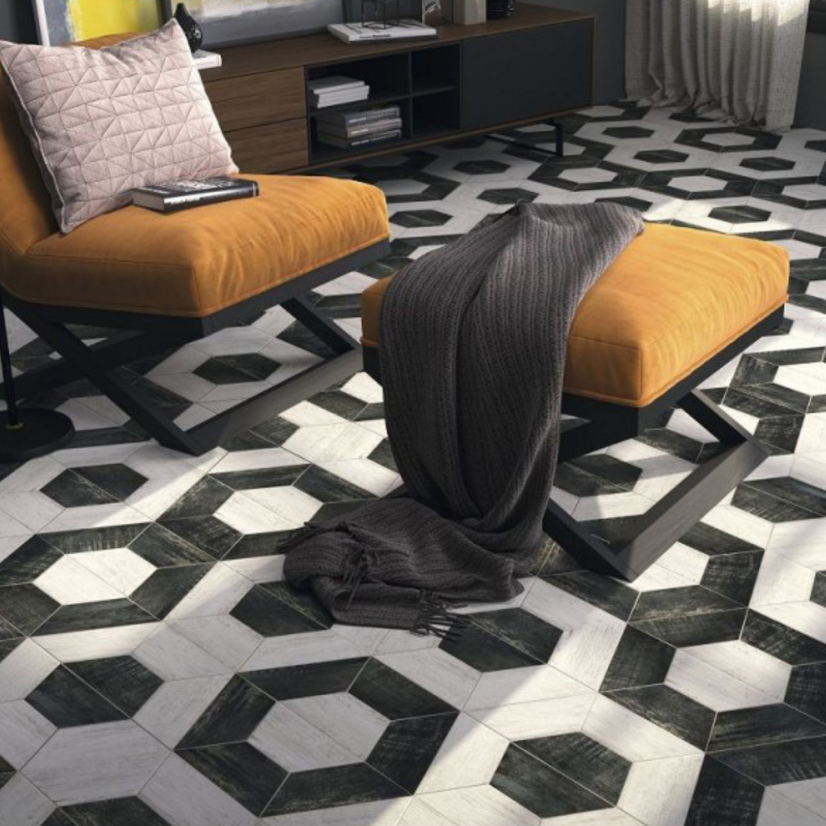 Azulejo porcelánico mate con forma de trapecio y 8mm de espesor, resistente a las heladas. Ideal para decorar tus suelos y paredes. Palermo es un derroche de sensorialidad, puro clasicismo en el fondo frente a vanguardia transgresora en la forma. Colores y todas las piezas necesarias para crear efectos de parquet cerámico de todo tipo. El único límite es tu imaginación.