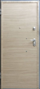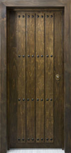 ▪ Hoja maciza compuesta por tablero de aglomerado y placa metálica de hierro. El grosor de la hoja es de 4 cm.